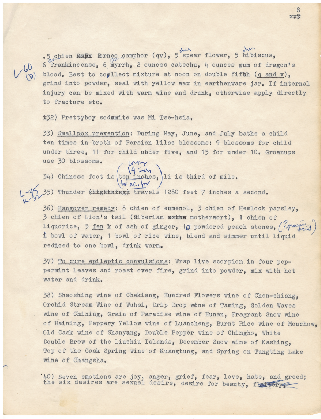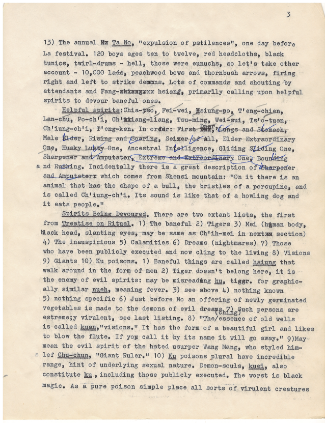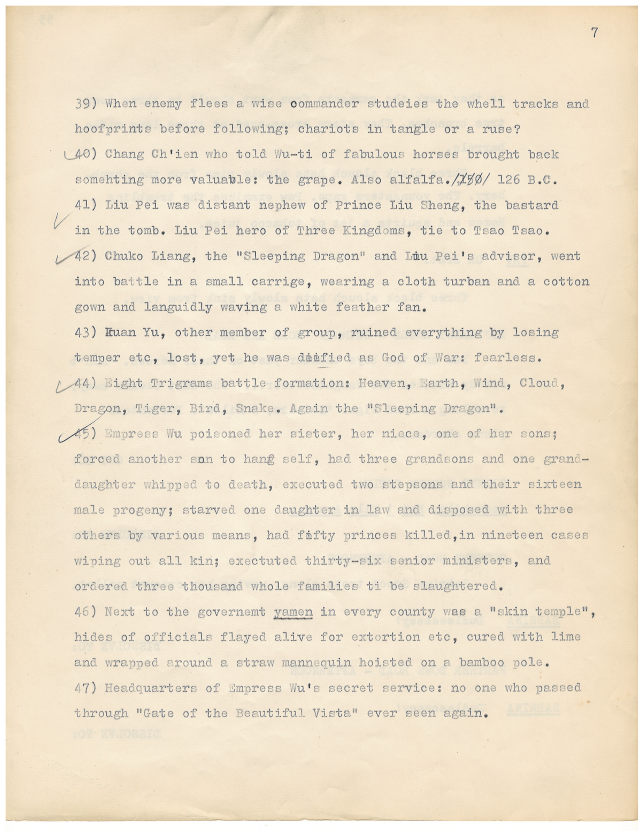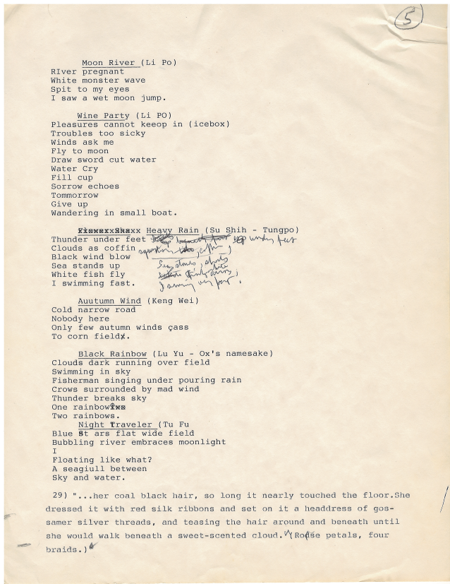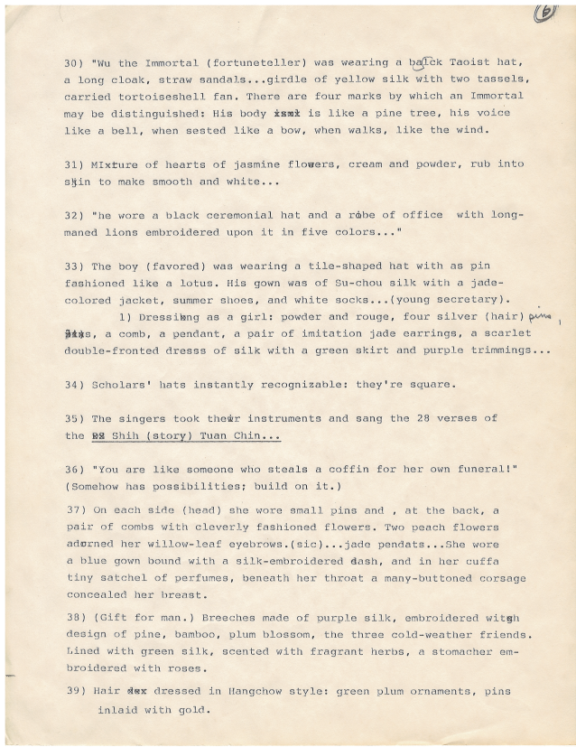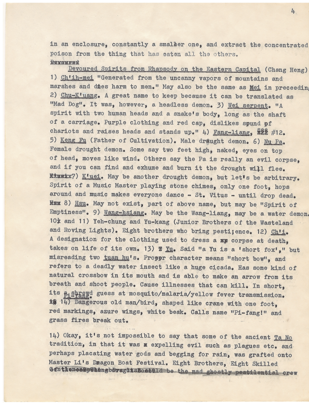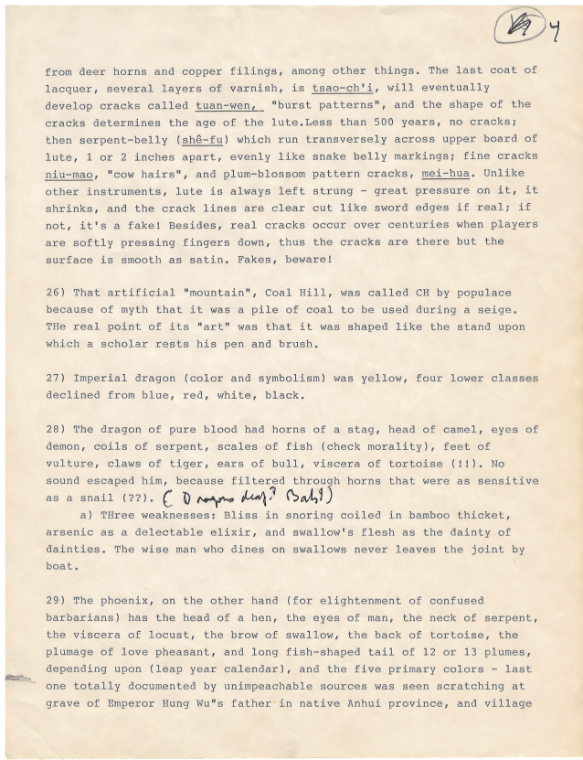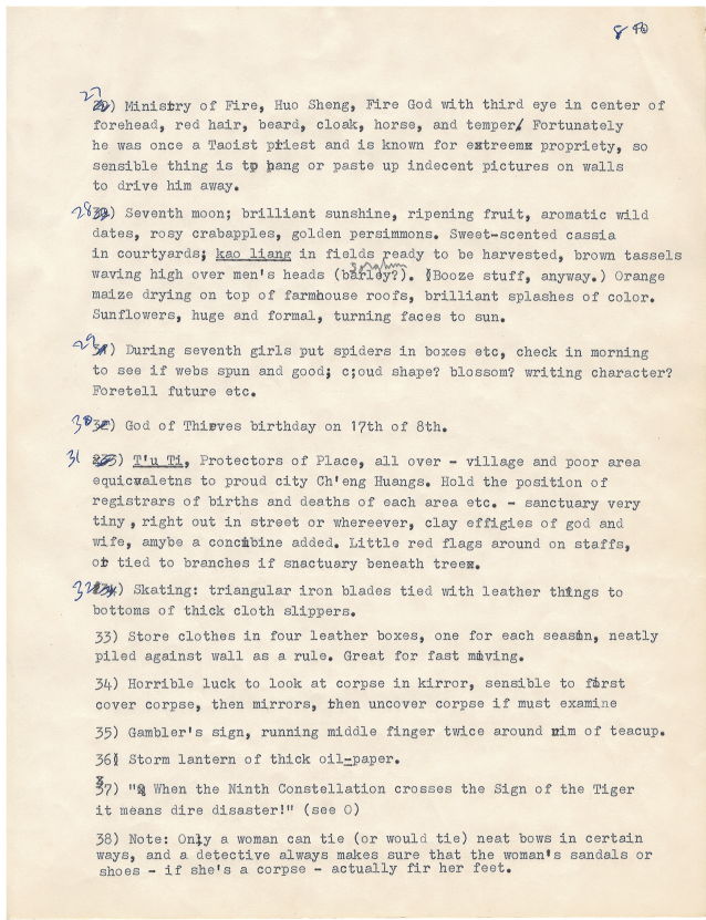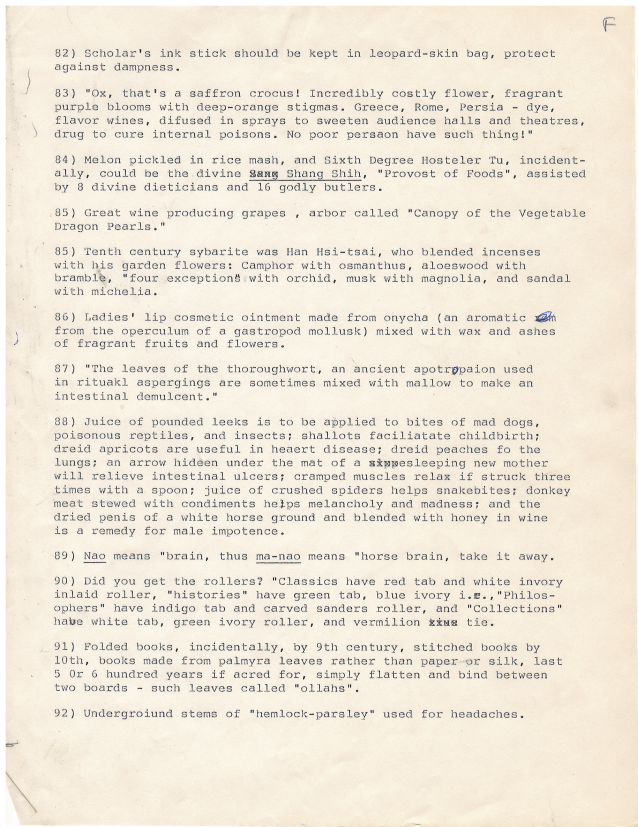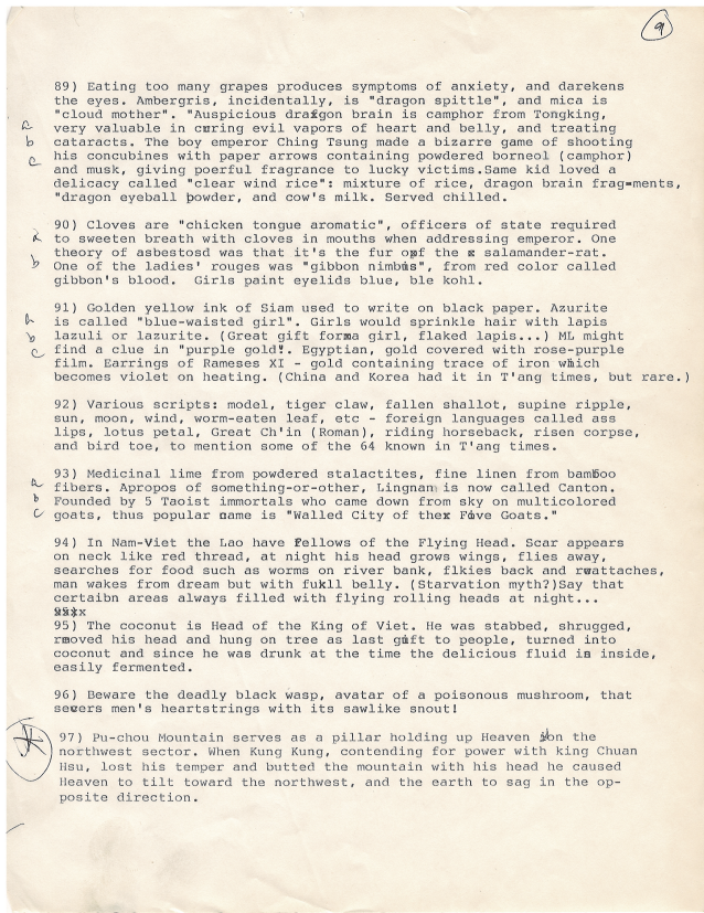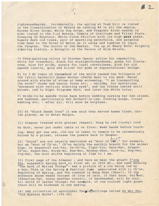 These were in bundles of 3 to 16 sheets, some on the back of typewritten Bridge of Birds text, and some on the back of TV or movie scripts. These groups of notes are presented in the order they were filed in the portfolio. Groups 11 and 12 are particularly interesting.